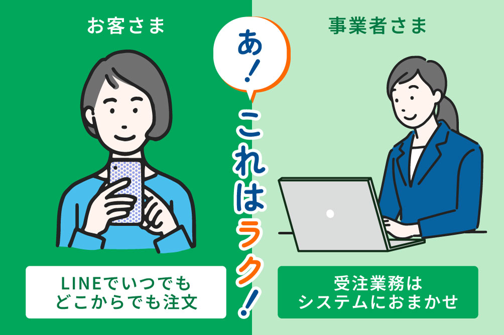 注文・予約受付作業大幅軽減!お客さまも、事業者さまも、どちらもラクラク。